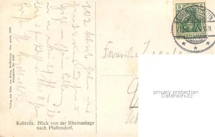 Koblenz_Rhein Blick von der Rheinanlage nach Pfaffendorf Koblenz_Rhein postalisch gelaufen bis 1920 Erhaltung siehe scans [WerneD78] WernPID7