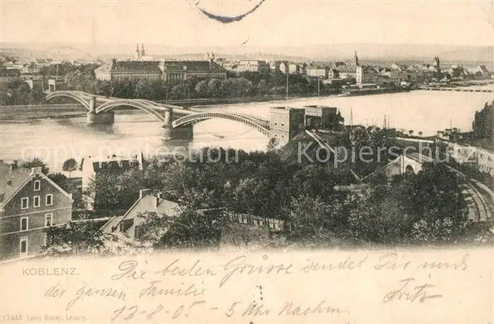 Koblenz_Rhein Panorama Bruecke Koblenz_Rhein postalisch gelaufen 1905 Erhaltung siehe scans [KathaD81] Kathoren