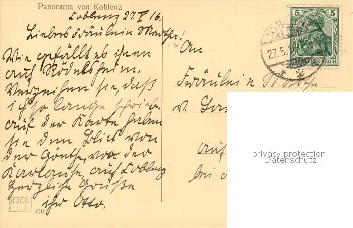 Koblenz_Rhein Panorama Koblenz_Rhein postalisch gelaufen 1916 Erhaltung siehe scans [WerneD78] WernPID7