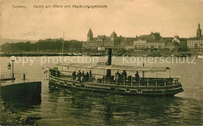 Koblenz_Rhein Regierungsgeb?ude Dampfer Koblenz_Rhein postalisch gelaufen bis 1920 Erhaltung siehe scans [PaolaD17] PaolPID1