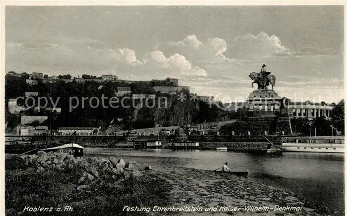 AK / Ansichtskarte Koblenz_Rhein Rheinufer Deutsches Eck Kaiser Wilhelm Denkmal Festung Ehrenbreitstein Koblenz_Rhein