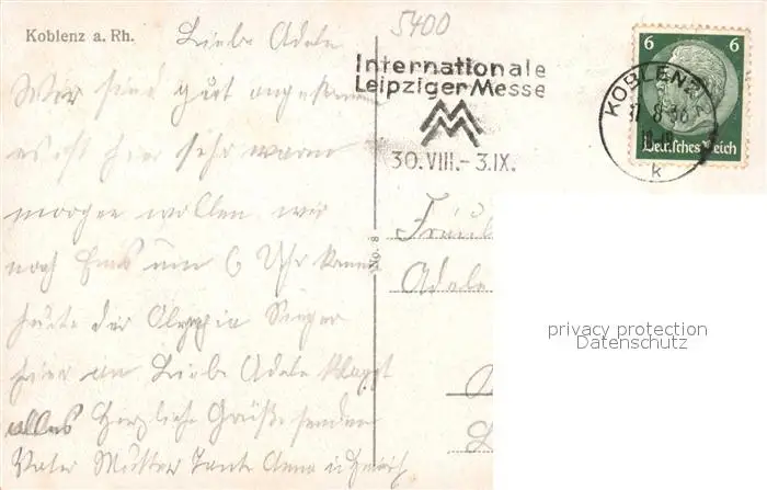 Koblenz_Rhein Rheinufer Deutsches Eck Kaiser Wilhelm Denkmal Festung Ehrenbreitstein Koblenz_Rhein postalisch gelaufen 1936 Erhaltung siehe scans [FriedD77] Frierer