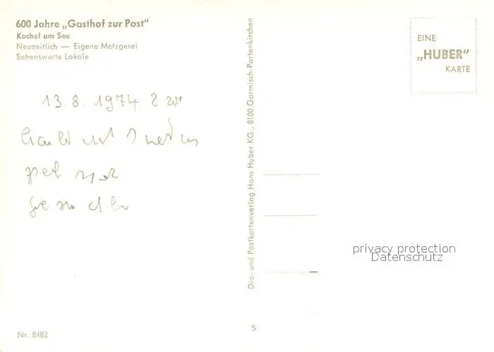 Kochel_See 600 Jahre Gasthof zur Post Fassadenmalerei Ritter Denkmal Huber Karte Nr. 8482 Kochel_See postalisch nicht gelaufen nach 1965 Erhaltung siehe scans [FriedD77] Frierer