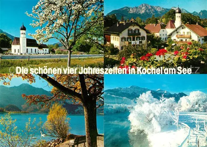 Kochel_See Kirche Dorfansicht Seepartie Herzogstand Kochel_See postalisch nicht gelaufen nach 1965 Erhaltung siehe scans [WerneD78] WernPID7