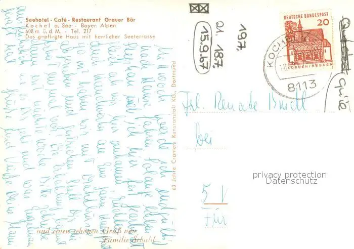 Kochel_See Seehotel Grauer Baer Restaurant Terrasse Kochel_See postalisch gelaufen 1967 Erhaltung siehe scans [FriedD77] Frierer