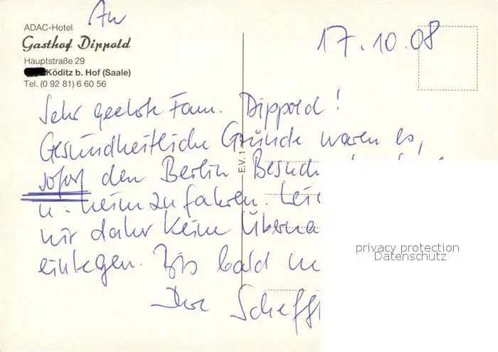 Koeditz_Oberfranken ADAC Hotel Gasthof Dippold Kirche Uferpartie an der Saale Koeditz Oberfranken postalisch nicht gelaufen 2008 Erhaltung siehe scans [FriedD77] Frierer