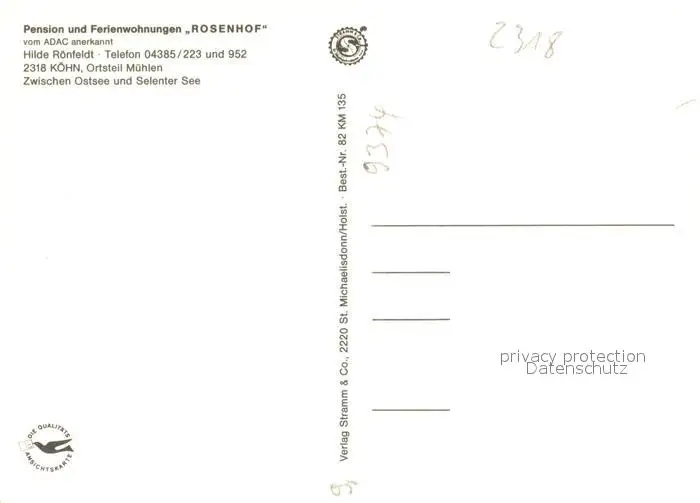 Koehn Pension und Ferienwohnungen Rosenhof Pool Gaststube Bar Koehn postalisch nicht gelaufen nach 1965 Erhaltung siehe scans [WerneD78] WernPID7