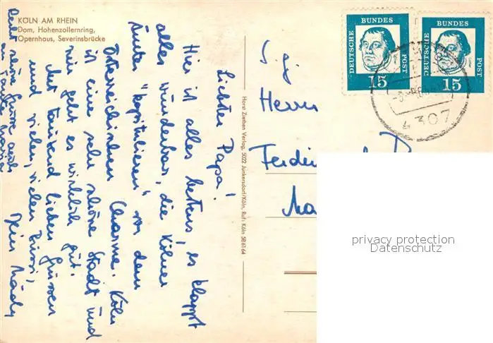 Koeln_Rhein Dom Hohenzollernring Opernhaus Severinsbruecke Koeln_Rhein postalisch gelaufen 1965 Erhaltung siehe scans [LiesaD40] LiesID40