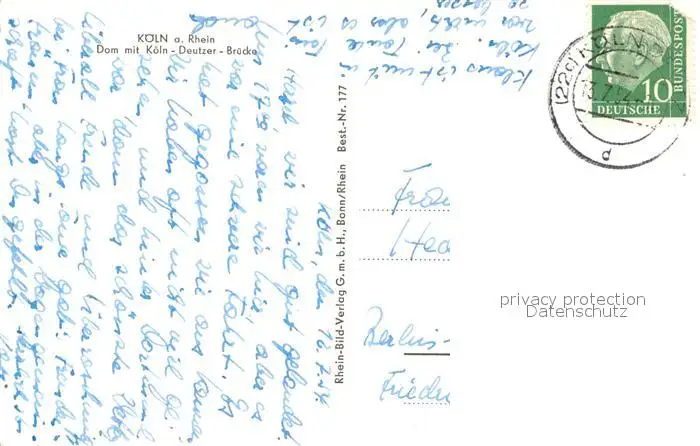 Koeln_Rhein Dom Koeln Deutzer Bruecke Koeln_Rhein postalisch gelaufen 1954 Erhaltung siehe scans [KathaD81] Kathoren
