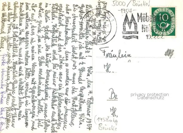 Koeln_Rhein Dom und Hohenzollernbruecke Koeln_Rhein postalisch gelaufen 1954 Erhaltung siehe scans [WerneD78] WernPID7