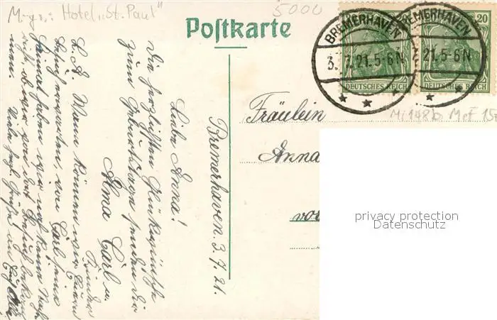 Koeln_Rhein Domplatz Hotel St. Paul Koeln_Rhein postalisch gelaufen 1921 Erhaltung siehe scans [LiesaD40] LiesID40