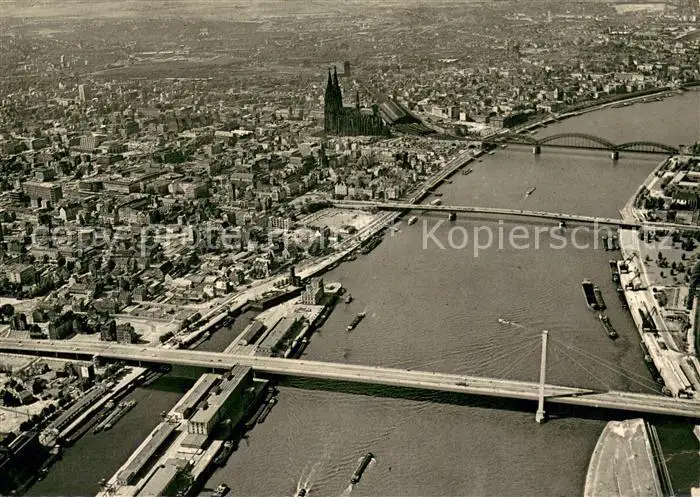 AK / Ansichtskarte Koeln_Rhein Fliegeraufnahme mit Severinsbruecke Deutzer Bruecke Hohenzollernbruecke Koeln_Rhein