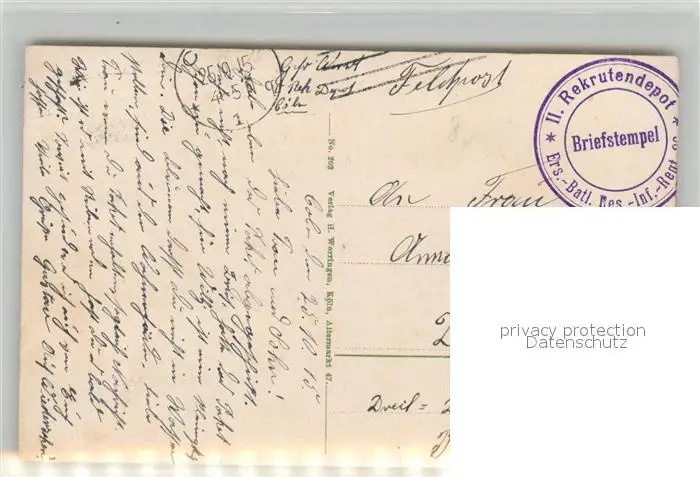 Koeln_Rhein Hauptbahnhof Koeln_Rhein postalisch gelaufen 1915 Feldpost Erhaltung siehe scans [FriedD77] Feldpost Frierer
