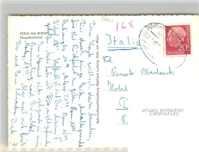 Koeln_Rhein Hauptbahnhof Koeln_Rhein postalisch gelaufen 1921-1965 Bahnpost Erhaltung siehe scans [FriedD77] Bahnpost Frierer