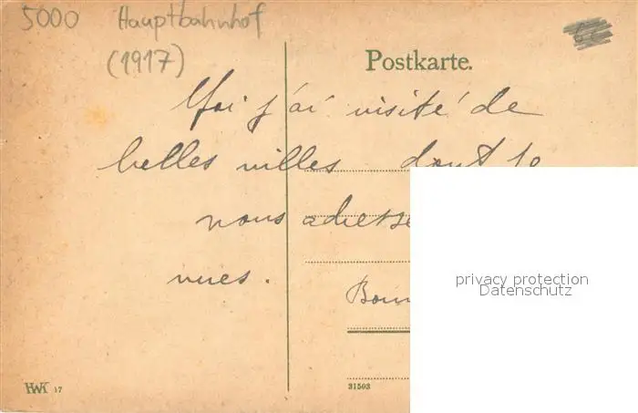 Koeln_Rhein Hauptbahnhof Koeln_Rhein postalisch nicht gelaufen 1917 Erhaltung siehe scans [WerneD78] WernPID7
