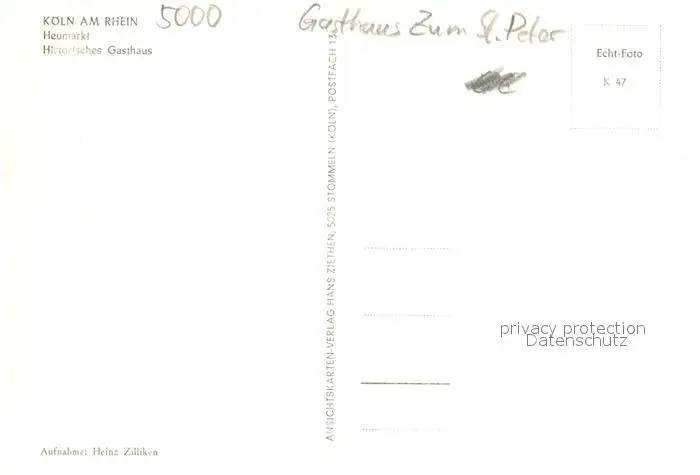 Koeln_Rhein Heumarkt Gasthaus zum St Peter Koeln_Rhein postalisch nicht gelaufen 1921-1965 Erhaltung siehe scans [WerneD78] WernPID7