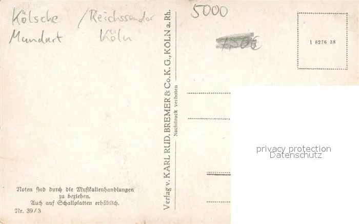 Koeln_Rhein Koelsche Reichssender Mundart Koeln_Rhein postalisch nicht gelaufen 1921-1965 Erhaltung siehe scans [WerneD78] WernPID7
