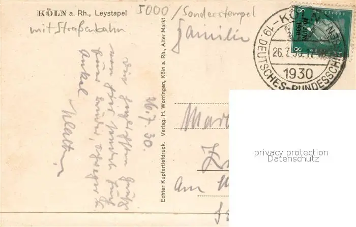 Koeln_Rhein Leystapel Koeln_Rhein postalisch gelaufen 1930 Erhaltung siehe scans [WerneD78] WernPID7