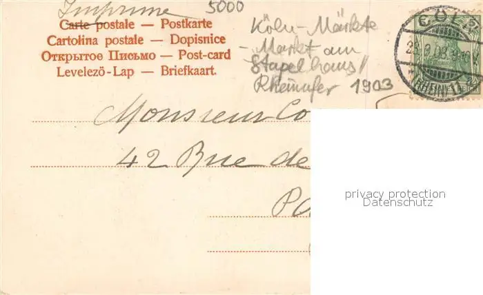 Koeln_Rhein Martinskirche Stapelhaus und Dom Koeln_Rhein postalisch gelaufen 1903 Erhaltung siehe scans [WerneD78] WernPID7