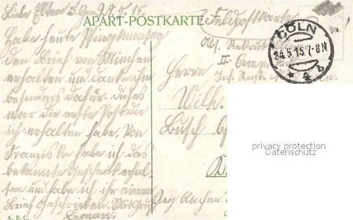 Koeln_Rhein Neumarkt Strassenbahn Kirche Koeln_Rhein postalisch gelaufen 1915 Feldpostkarte Erhaltung siehe scans [FriedD77] Feldpostkarte Frierer