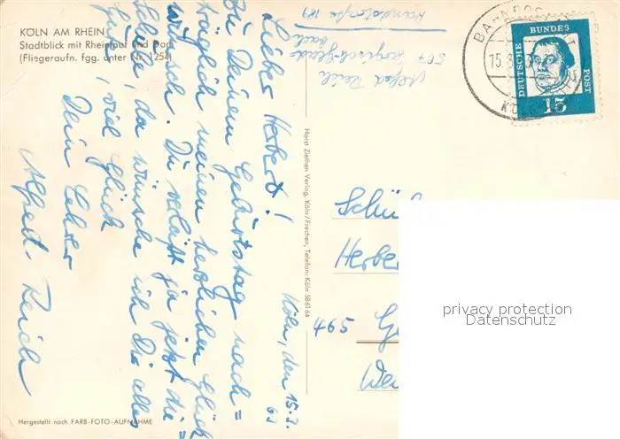 Koeln_Rhein Stadtblick mit Rheinlauf und Dom Koeln_Rhein postalisch gelaufen 1963 Fliegeraufnahme Erhaltung siehe scans [FriedD77] Fliegeraufnahme Frierer
