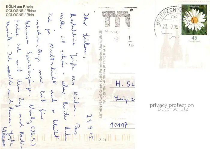 Koeln_Rhein Kategorie Alte Ansichtskarten Postkarten bx89693 Koeln_Rhein Stadtpanorama mit Koelner Dom Fliegeraufnahme Koeln_Rhein postalisch gelaufen 2005 Erhaltung siehe scans [FriedD77]