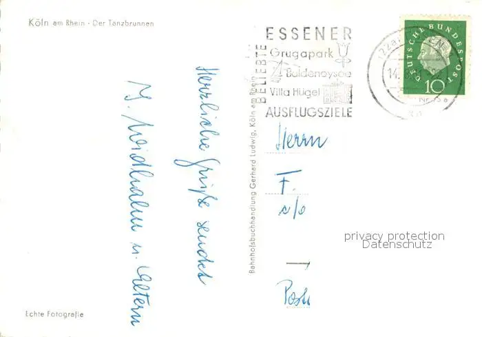 Koeln_Rhein Tanzbrunnen Koeln_Rhein postalisch gelaufen 1961 Erhaltung siehe scans [LiesaD40] LiesID40