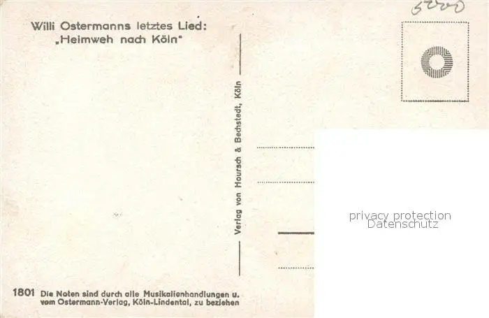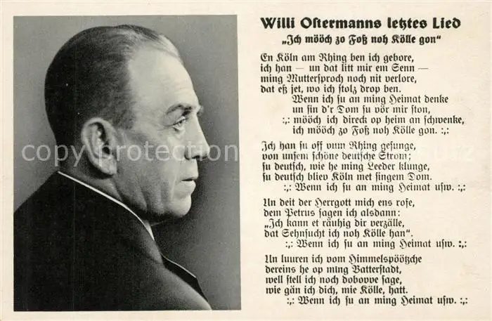 Koeln_Rhein Willi Ostermanns letztes Lied Heimweh nach Koeln Portrait Koeln_Rhein postalisch nicht gelaufen 1921-1965 Erhaltung siehe scans [FriedD77] Frierer