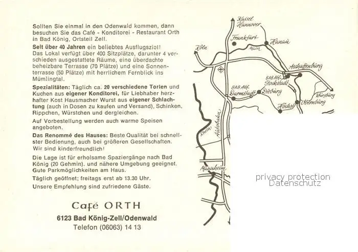Koenig_Bad Cafe Orth Koenig_Bad postalisch nicht gelaufen nach 1965 Werbekarte (keine Postkarte) Erhaltung siehe scans [KathaD81] Werbekarte (keine Postkarte) Kathoren