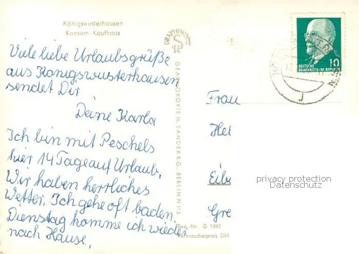 Koenigs-Wusterhausen Konsum Kaufhaus Koenigs-Wusterhausen postalisch gelaufen 1964 Erhaltung siehe scans [FriedD77] Frierer