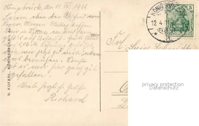 Koenigsbrueck Offizier Soldat Militaer Koenigsbrueck postalisch gelaufen 1911 Erhaltung siehe scans [FriedD77] Frierer
