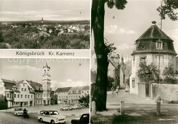 AK / Ansichtskarte Koenigsbrueck Ortsuebersicht Rathaus Karl Marx Platz Wohnhaus Pavillon Denkmalschutz Koenigsbrueck