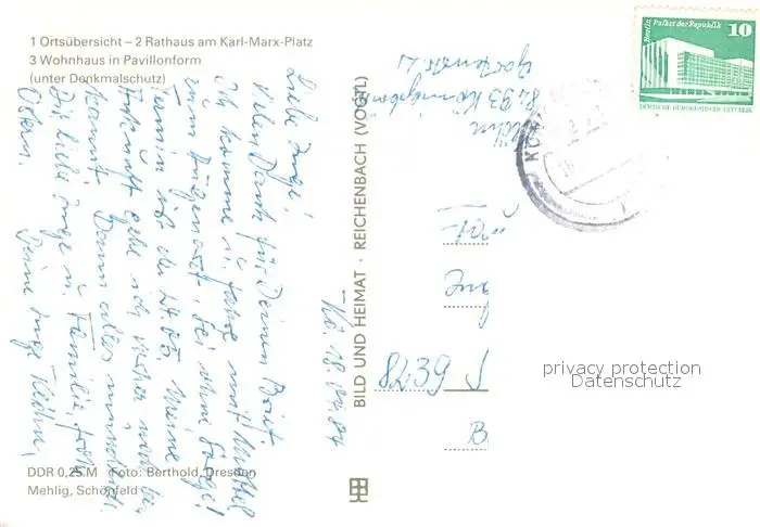 Koenigsbrueck Ortsuebersicht Rathaus Karl Marx Platz Wohnhaus Pavillon Denkmalschutz Koenigsbrueck postalisch gelaufen 1984 Erhaltung siehe scans [FriedD77] Frierer