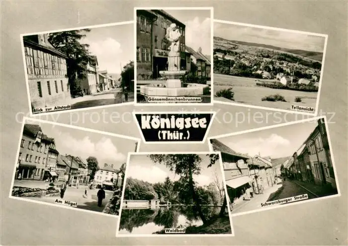 AK / Ansichtskarte Koenigsee_Thueringen Altstadt Gaensemaennchenbrunnen Panorama Am Huegel Waldbad Schwarzburger Strasse Koenigsee Thueringen