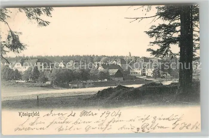 Koenigsfeld_Schwarzwald Ortsansicht Koenigsfeld Schwarzwald postalisch gelaufen 1904 Erhaltung siehe scans [WerneD78] WernPID7