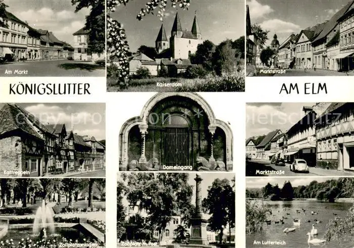 AK / Ansichtskarte Koenigslutter_Elm Markt Kaiserdom Marktstrasse Domeingang Marktstrasse Zollplatzanlagen Zollplatzmit Post Am Lutterteich Koenigslutter Elm