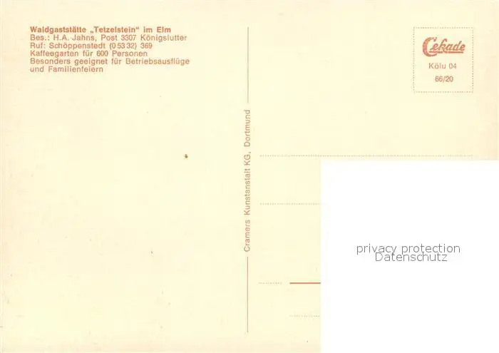 Koenigslutter_Elm Waldgaststaette Tetzelstein Ehrenmal Koenigslutter Elm postalisch nicht gelaufen nach 1965 Erhaltung siehe scans [LiesaD40] LiesID40