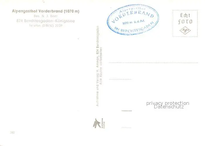 Koenigssee Alpengasthof Vorderbrand Aussenansicht m. Hohem Brett Koenigssee postalisch nicht gelaufen 1921-1965 Erhaltung siehe scans [LiesaD40] LiesID40