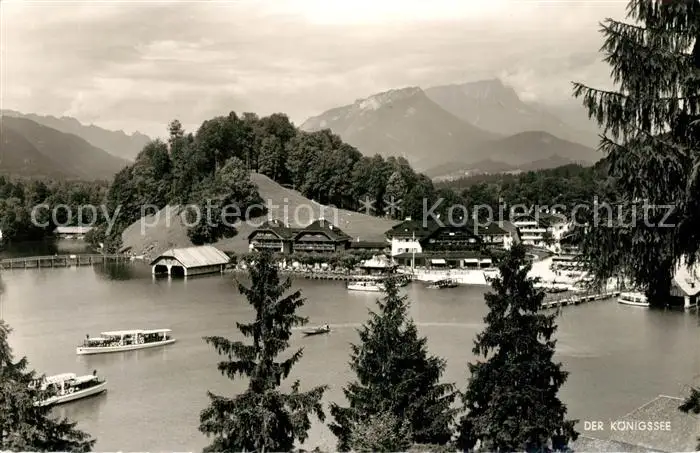 AK / Ansichtskarte Koenigssee Hotel Schiffmeister Hotel Seehaus mit Lattengebirge und Untersberg Alpen Koenigssee