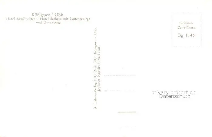 Koenigssee Hotel Schiffmeister Hotel Seehaus mit Lattengebirge und Untersberg Alpen Koenigssee postalisch nicht gelaufen nach 1965 Erhaltung siehe scans [FriedD77] Frierer