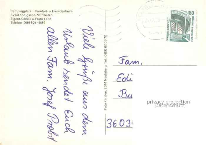 Koenigssee-Muehlleiten Campingplatz Comfort und Fremdenheim postalisch gelaufen 1996 Erhaltung siehe scans [WerneD78] WernPID7