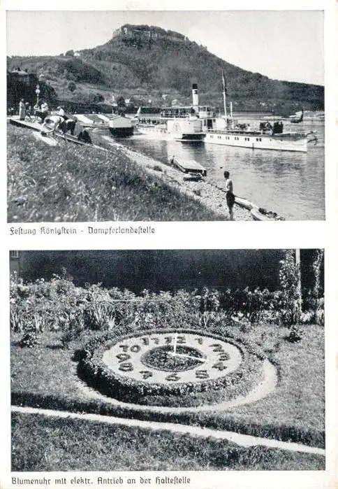Koenigstein_Saechsische_Schweiz Festung Koenigstein Dampferlandestelle Blumenuhr Koenigstein_Saechsische postalisch nicht gelaufen 1921-1965 Erhaltung siehe scans [WerneD78] WernPID7