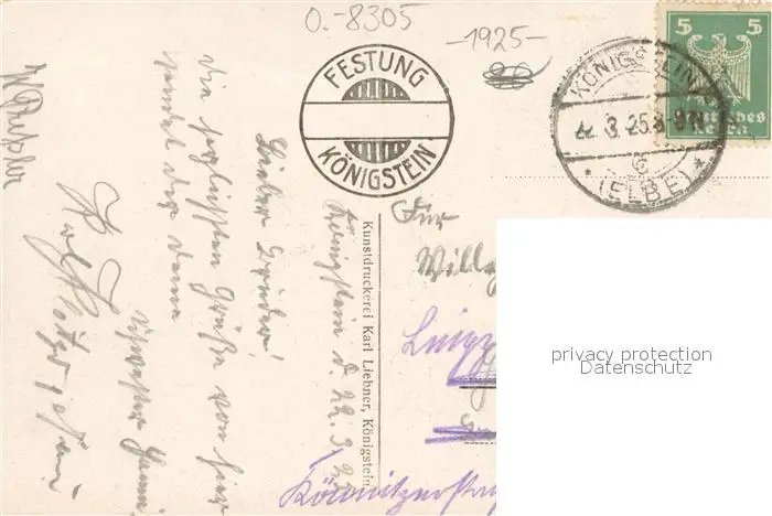 Koenigstein_Saechsische_Schweiz Festung Nordseite Koenigstein_Saechsische postalisch gelaufen 1925 Erhaltung siehe scans [LiesaD40] LiesID40