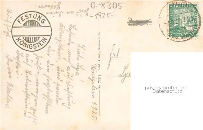 Koenigstein_Saechsische_Schweiz Festung und Stdt Koenigstein_Saechsische postalisch gelaufen 1925 Erhaltung siehe scans [LiesaD40] LiesID40