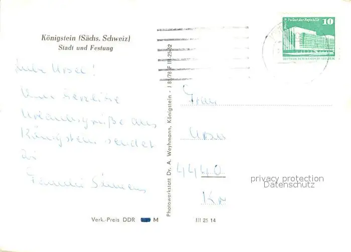Koenigstein_Saechsische_Schweiz Stadt und Festung Koenigstein_Saechsische postalisch gelaufen nach 1965 Erhaltung siehe scans [WerneD78] WernPID7