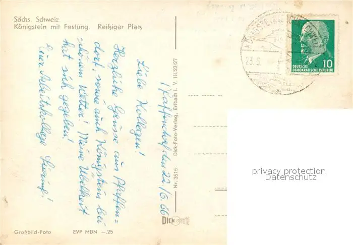 Koenigstein_Saechsische_Schweiz mit Festung Reissiger Platz Koenigstein_Saechsische postalisch gelaufen 1966 Erhaltung siehe scans [WerneD78] WernPID7