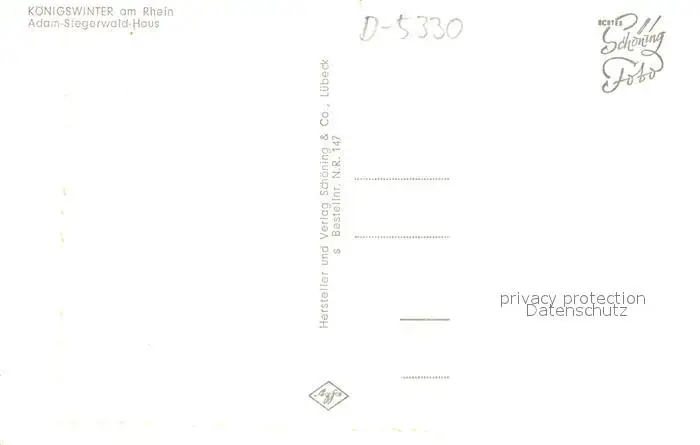 Koenigswinter Adam Stegerwald Haus Koenigswinter postalisch nicht gelaufen 1921-1965 Erhaltung siehe scans [FriedD77] Frierer