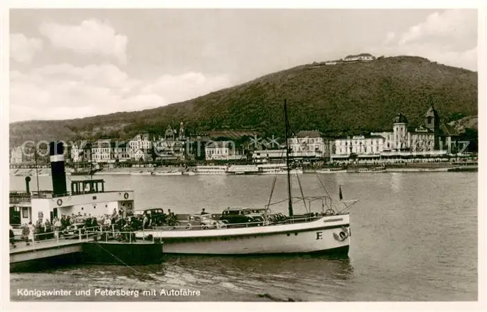 Koenigswinter Bootsanleger Rhein Autofaehre Blick zum Petersberg Koenigswinter postalisch nicht gelaufen 1921-1965 Erhaltung siehe scans [FriedD77] Frierer