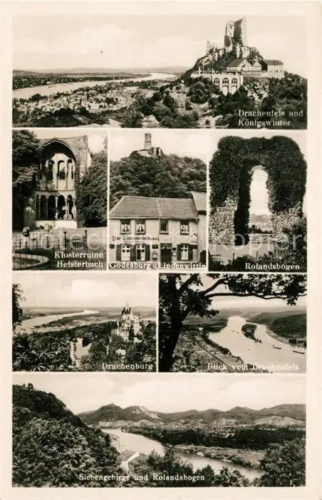 Koenigswinter Drachenfels Klosterruine Heisterbach Lindenwirtin Rolandsbogen Drachenburg Siebengebirge Koenigswinter postalisch gelaufen 1921-1965 Erhaltung siehe scans [WerneD78] WernPID7