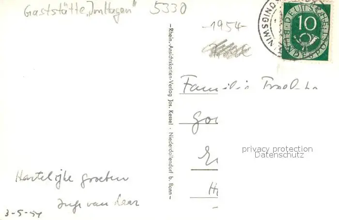 Koenigswinter Gaststaette Im Hagen Margarethenhoehe im Siebengebirge Koenigswinter postalisch gelaufen 1954 Erhaltung siehe scans [FriedD77] Frierer